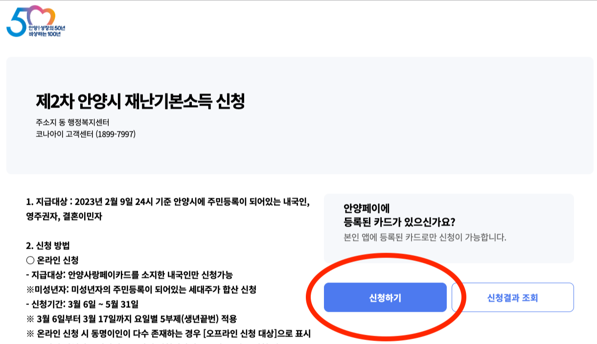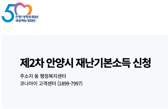 제2차 안양시 재난기본소득 신청 주소지 동 행정복지센터 코나아이 고객센터 (1899-7997)